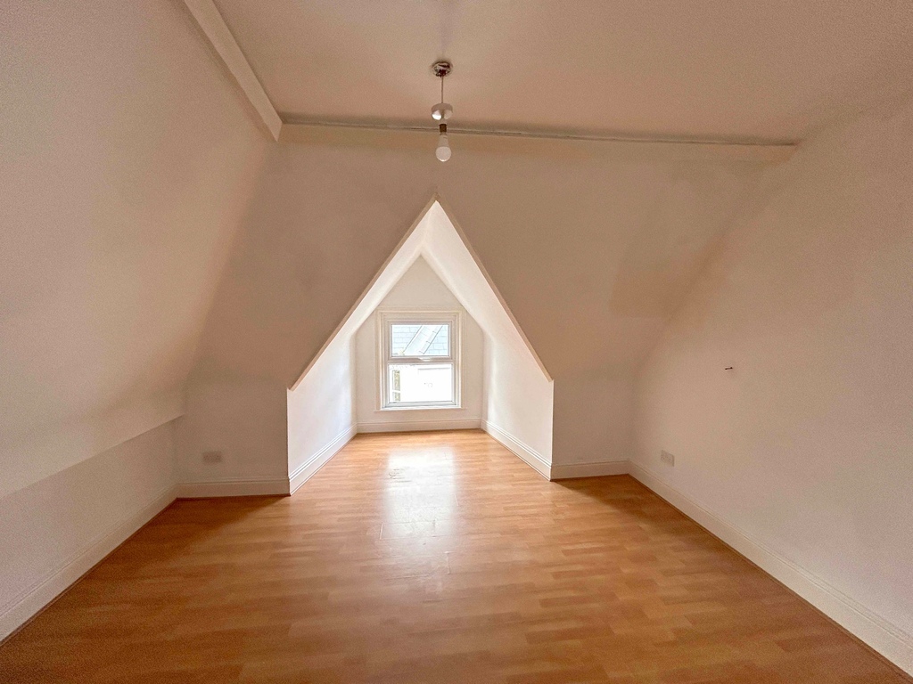 The main bedroom is to the rear of the flat with window set into a gable and ample space for a double bed and wardrobes and the second bedroom is to the right hand size and again is a full double with side window.