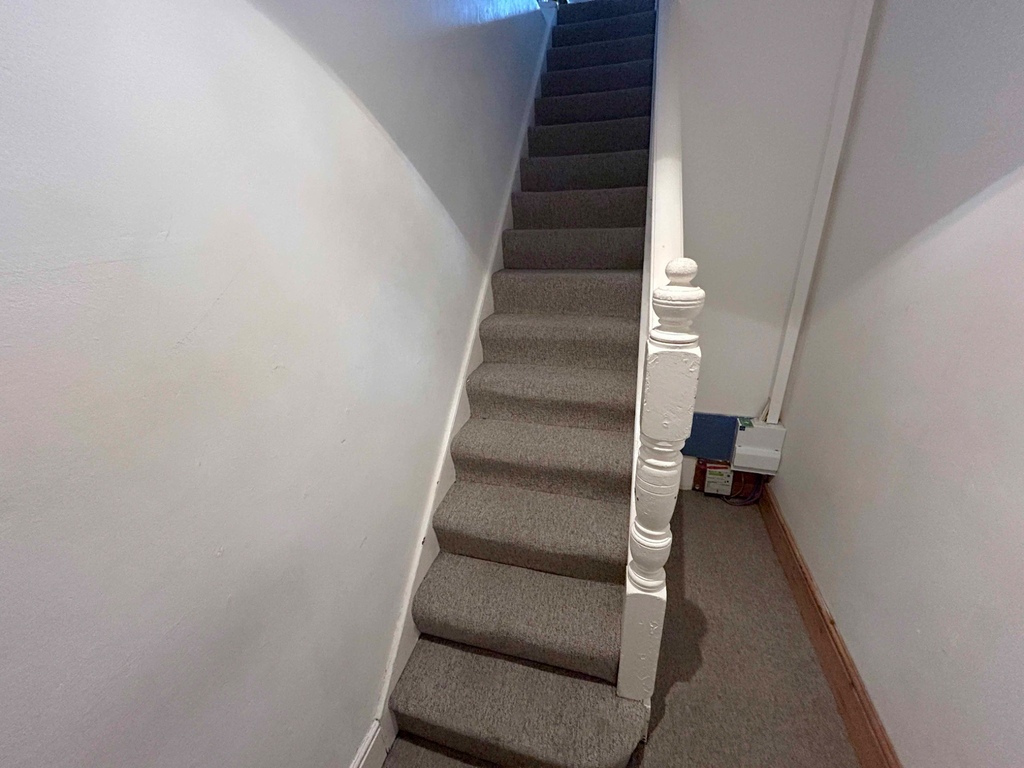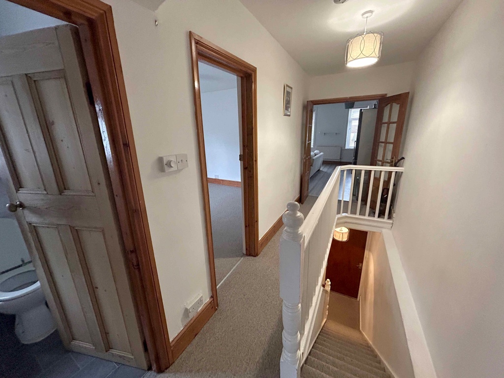 The flat's front door leads to a lobby area with space for hanging coats etc.. and then stairs lead up to the first floor landing which gives access to all the flat's rooms. There is also a loft hatch to the attic extra storage space.
