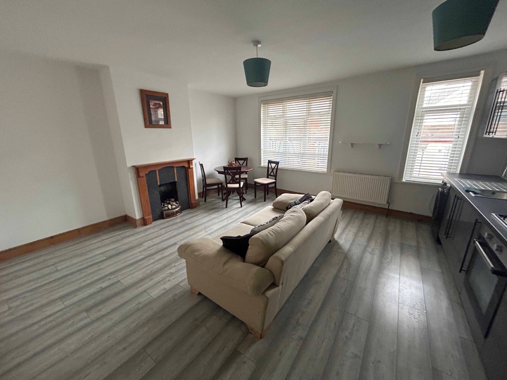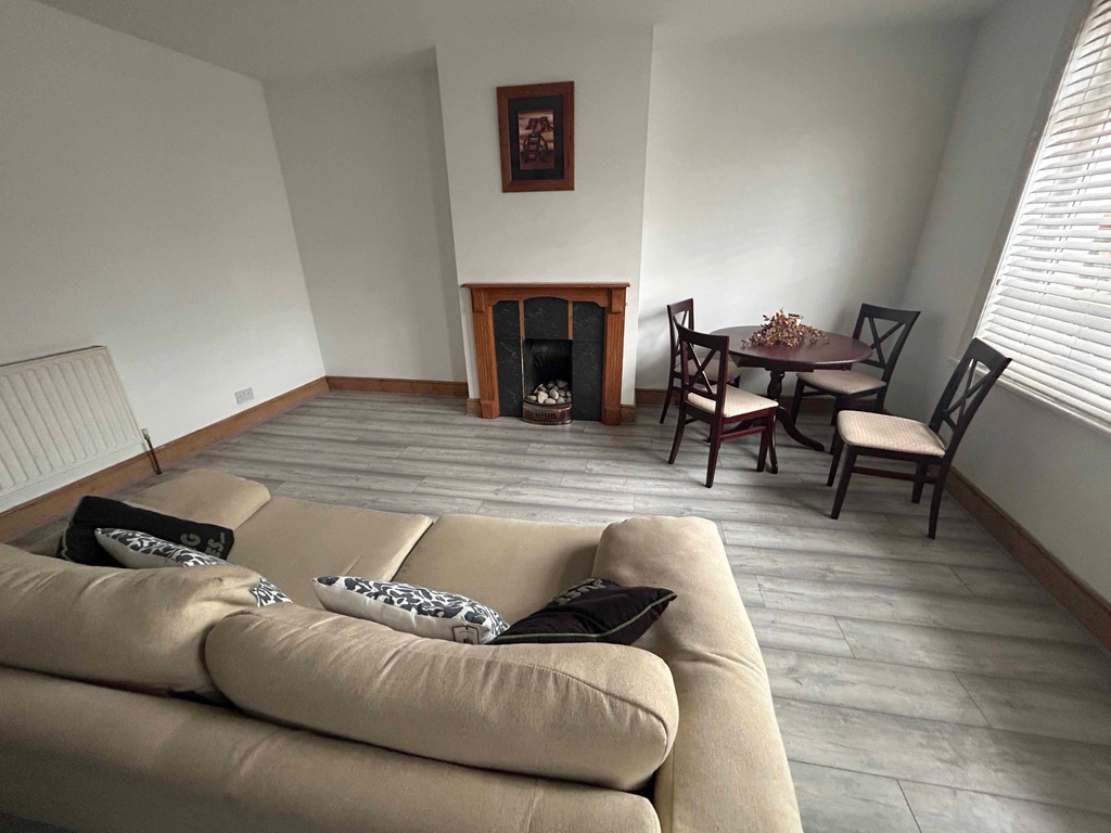 There are two windows to the front aspect and a decorative fireplace to the left with ample space for both sofa and dining suites.