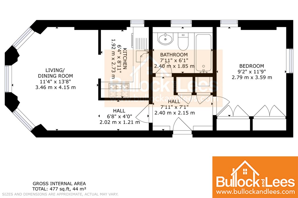 The lounge leads into the kitchen which has been fitted with units with a range of appliances including fitted oven and hob, a fridge freezer and a washing machine (none tested).