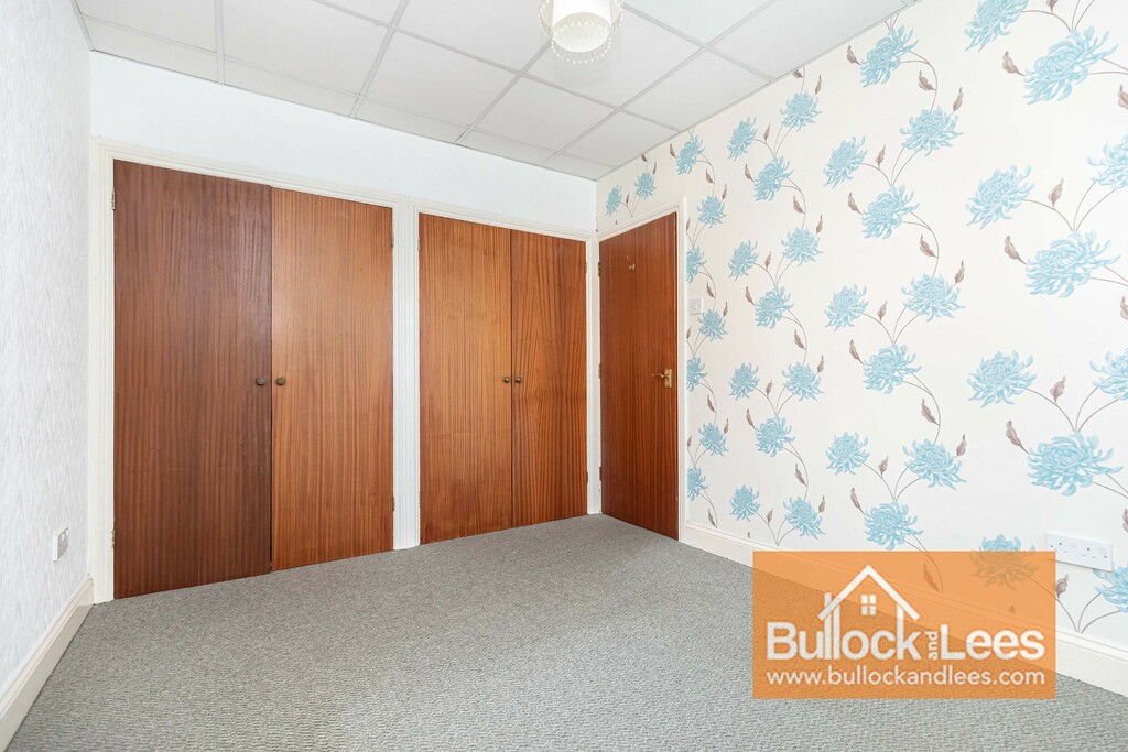 The Bedroom has high ceilings and twin built-in wardrobes.