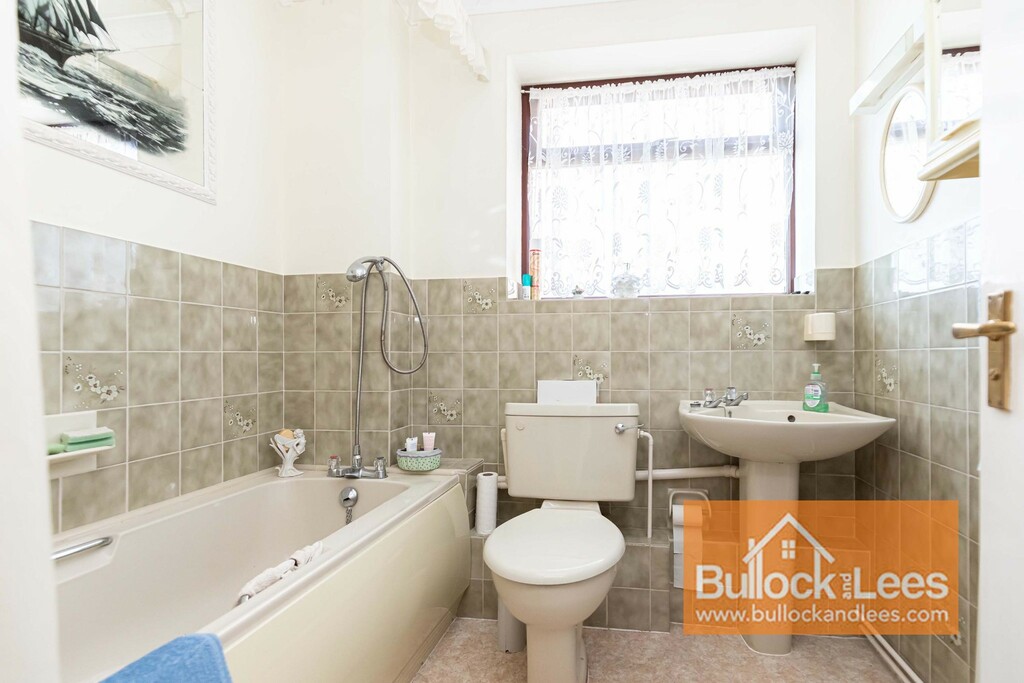 Like the en-suite, this is a full bathroom with its own window to the side. It has a pastel coloured suite with part tiled walls and would benefit from modernisation too.