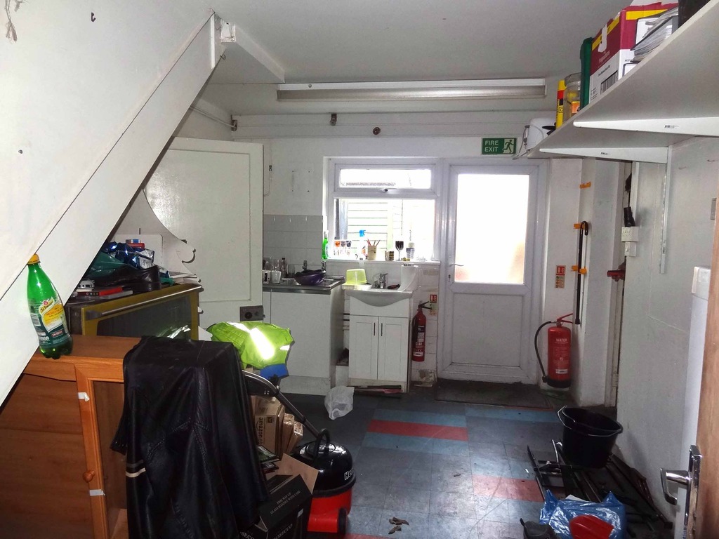Comprises two good sized office both with power and lighting. Doors leading to kitchen area further comprising two sinks, space for fridge/freezer, UPVC double glazed window and door leading to ground floor WC.