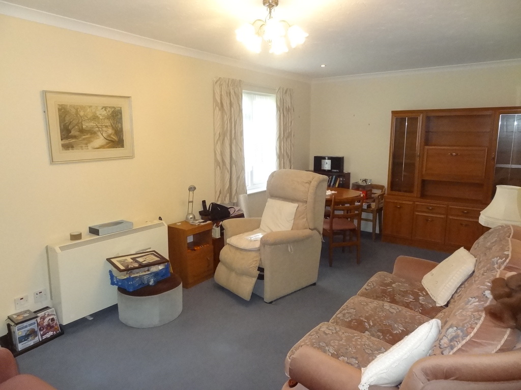 With side and rear aspect UPVC double glazed windows over looking the communal gardens. Space for sofa suite and a small dining table and chairs. Night storage heater, TV point etc.