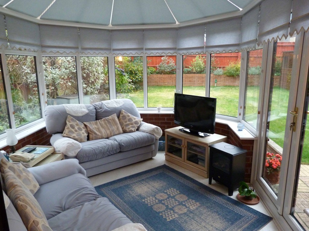 Low brick elevations with double glazed units over with matching vaulted ceiling and double doors to garden.