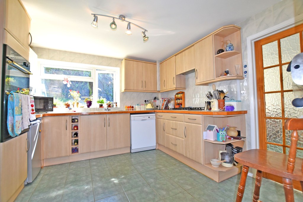 Approx kitchen area, narrowing to 2.34m (7'8" )in the dining area. Double aspect with window over the front driveway and window over the rear garden. Fitted with a range of base and eye level untis allowing for storage. Also offering plenty of work surfaces. Features an attractive tiled floor. Space for 'American Style' fridge freezer, sink unit, fitted double oven with integrated hob with extractor hood over, space for dishwasher, space for further appliance. Further storage space availble via under stair cupboard.