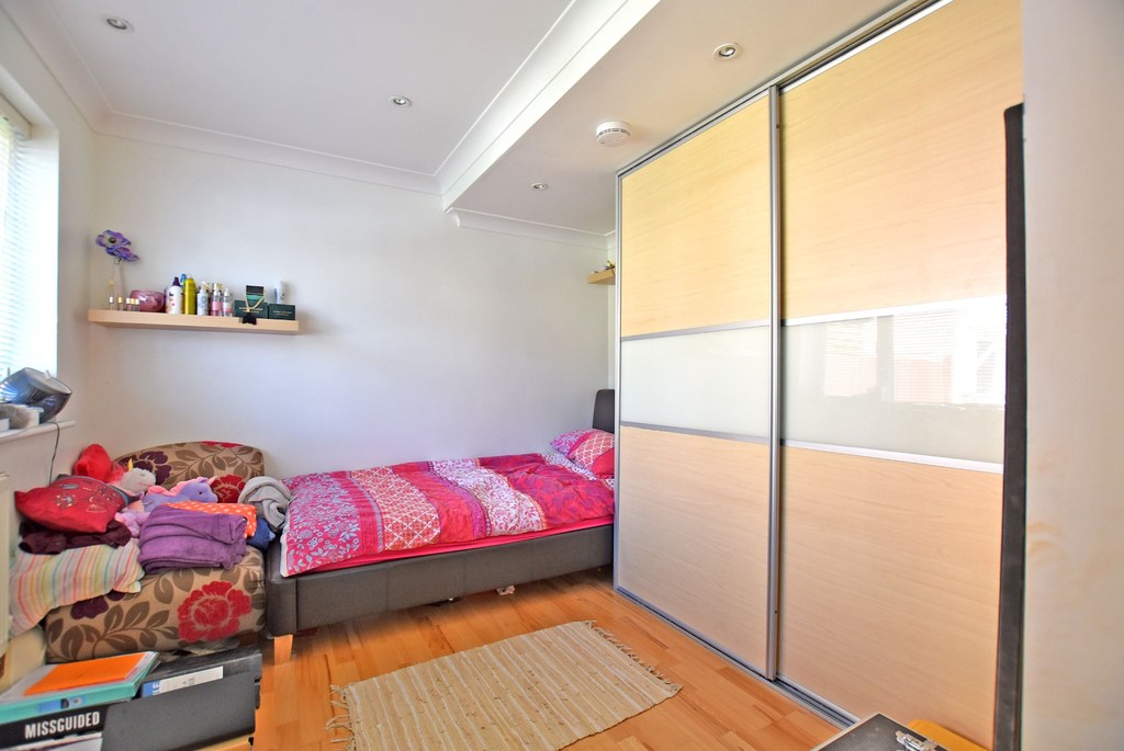 Attractive fitted wardrobe. Window to garden, radiator, power points, down lighters.