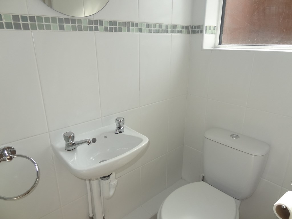 Obscured double glazed window to side aspect. Fitted with a glazed shower cubicle with basin and WC.