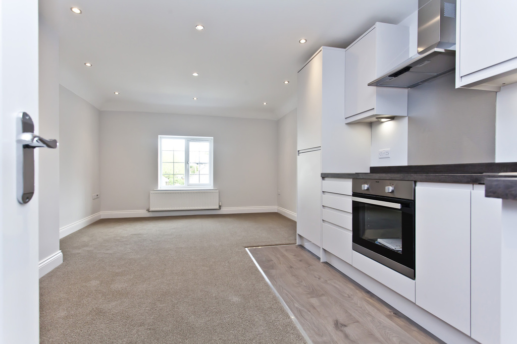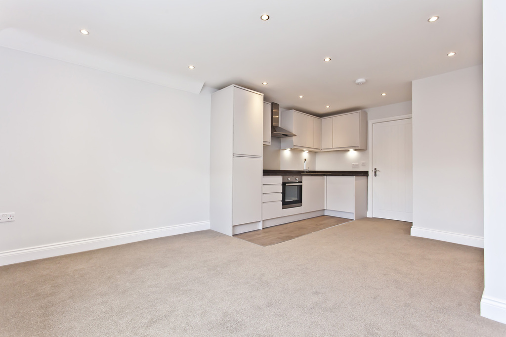 To the right as you enter is the kitchen area where you then pass through to the main room where there is a window to the rear aspect and space for sofa and dining room suite, inset spotlights, TV point and telephone point.