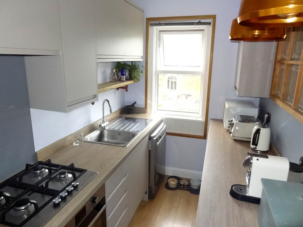 Window to front aspect, radiator. The kitchen was recently re-fitted with a range of modern units comprising a single bowl single drainer stainless steel sink inset into squared edge wood effect laminate working surfaces. There is a selection of base drawer and storage cupboards and a further matching range of wall mounted eye level units over. Cooking facilities are provided by a inset four ring gas hob with housed electric oven under with full height splash back and extractor hood over. There is under worktop space and plumbing for washing machine, tumble dryer and dish washer and to one side is space for a tall fridge/freezer.