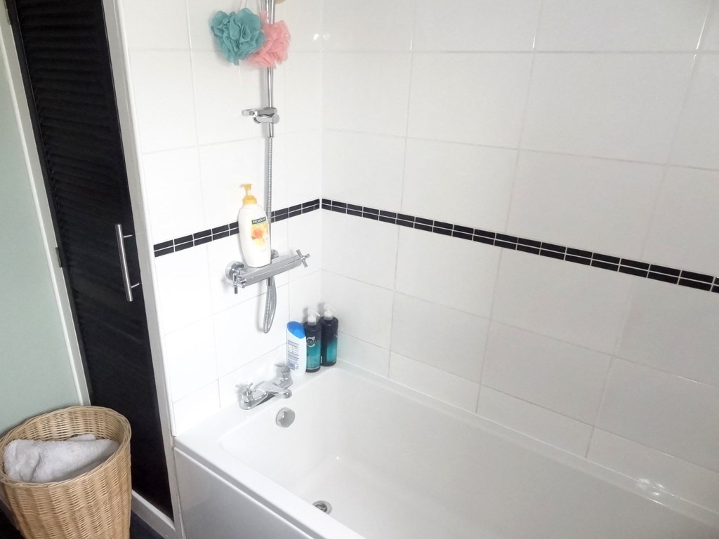 Obscured glazed window to rear aspect, radiator. The bathroom has half tiled walls (fully tiled in bath/shower area) featuring a modern white suite comprising bath with shower over, adjacent pedestal wash hand basin with monoblock mixer tap and pop up waste, corner lining cupboard