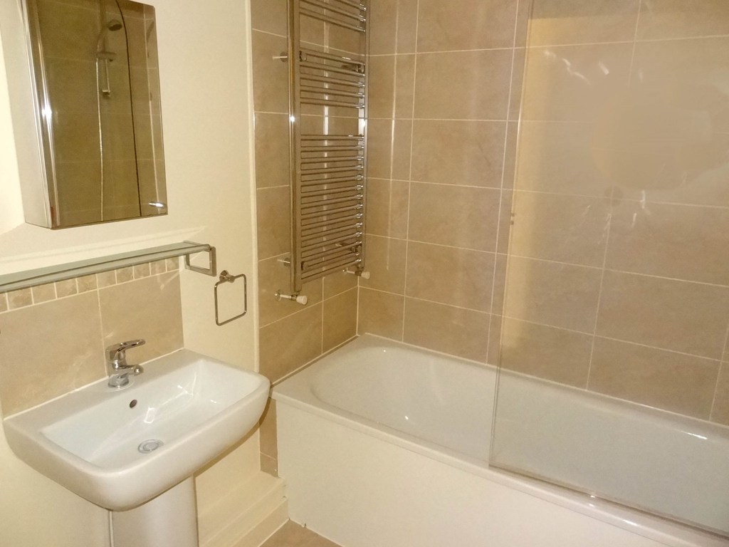 Fitted with a modern white suite comprising bath with thermostatic mixer tap and shower over with hinged glass screen, the walls are fully tiled in the bath area, matching pedestal wash hand basin and closed coupled w/c. Mirror fronted cabinet, shaver point and extractor fan.