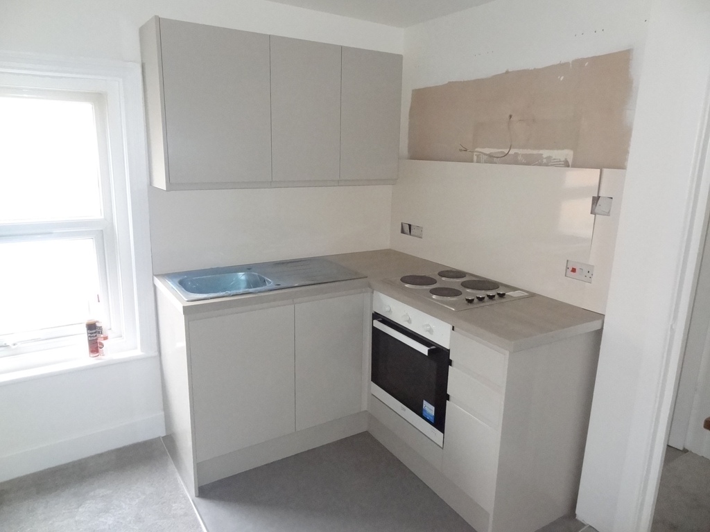 Double glazed window to side aspect, with the kitchen new kitchen units ans worktops to the right hand corner as you enter. There is a new carpet floor in the main area with space for a sofa suite and table whilst there is vinyl flooring by where the kitchen will be. Wall heater.