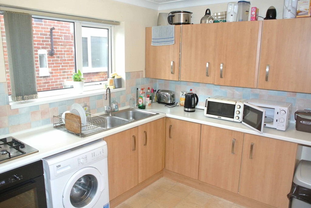 The kitchen has a window to the side aspect and is fitted with a selection of matching base and wall mounted units with a sink by the window. To the left of this is the wall mounted gas fired boiled, serving the central heating system and hot water. Cooking facilities are provided by a four-ring hob with housed electric oven under and there is a washing machine. To one corner is a breakfast bar and a fridge freezer.