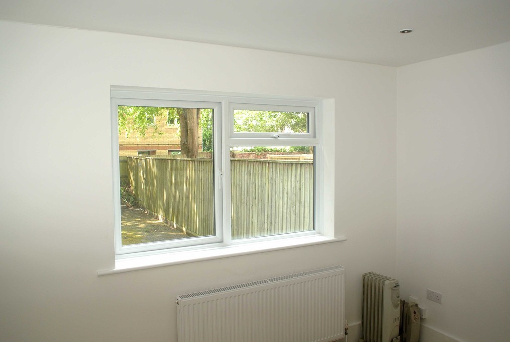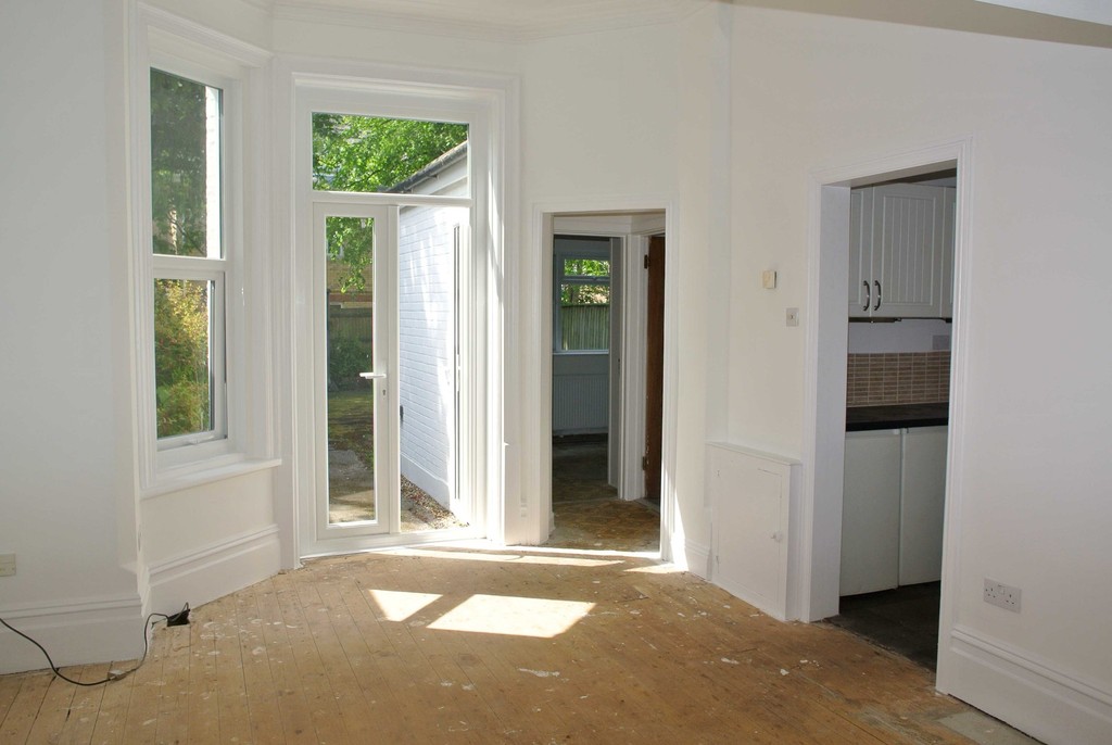 The flat has two entrance doors; one from the side path and one in from the rear garden.