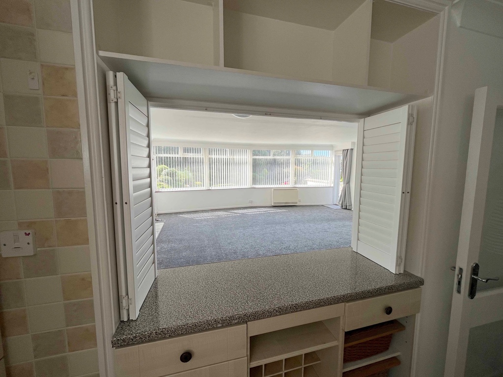 The living room is of an especially good size with a huge picture window to the sunny south aspect and there is a door to the large sun terrace. There is ample space for full size sofa and dining suites and a wide hatchway through to the kitchen. The terrace is south facing also has ample space for outdoor dining along with sunbeds etc..