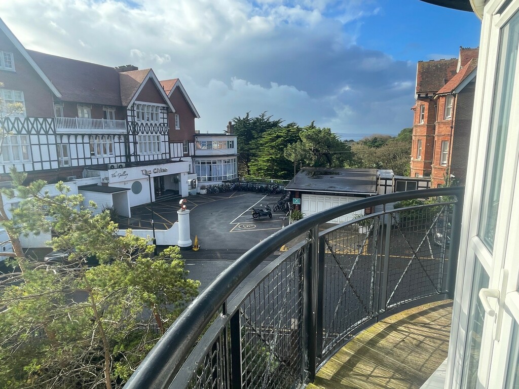 The lounge and balcony offer sea glimpses towards the Purbecks and out over Poole Bay.