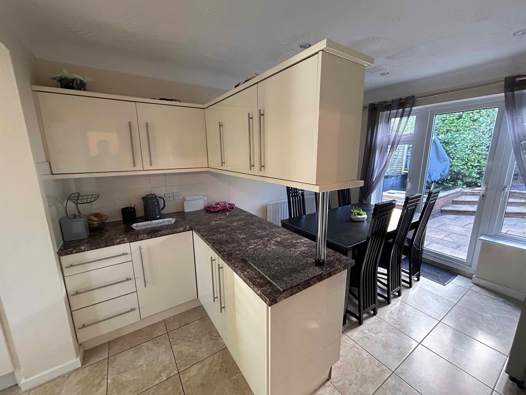 The kitchen is fully fitted with a door to the side and a peninsula unit separating it from the breakfast/dining area where there is space for a family sized table and a further patio door to the garden.