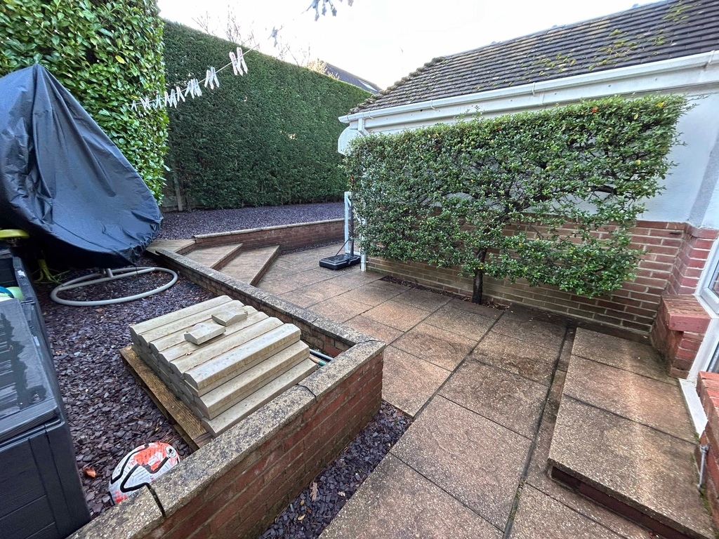 The rear garden area is designed for low maintenance with a small raised lawn and high hedges fo privacy. There are ample patio areas with space for ourdoor dining, sunbeds and barbecues.