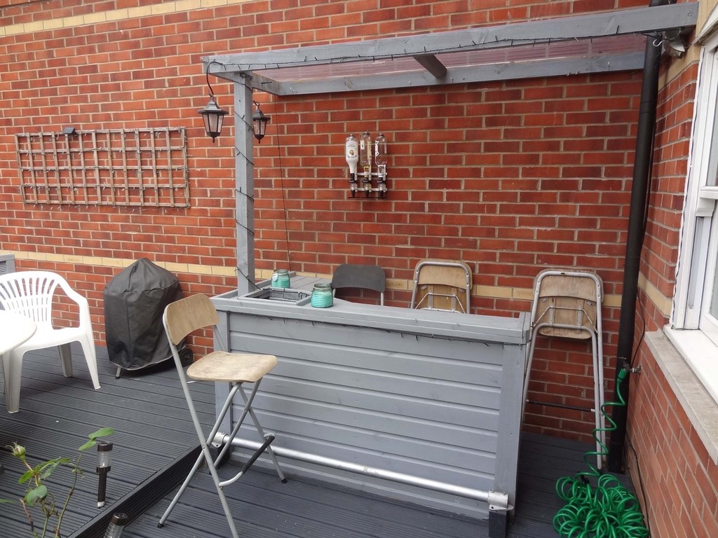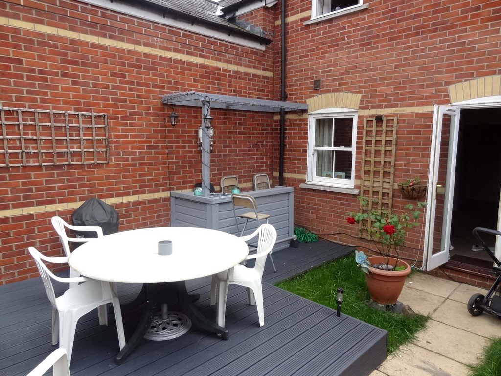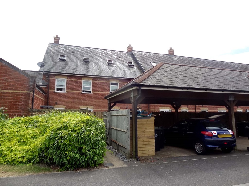 An enclosed rear garden with gates leading to the rear of the property where there is a car port and parking space.