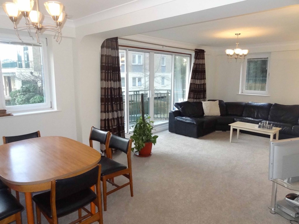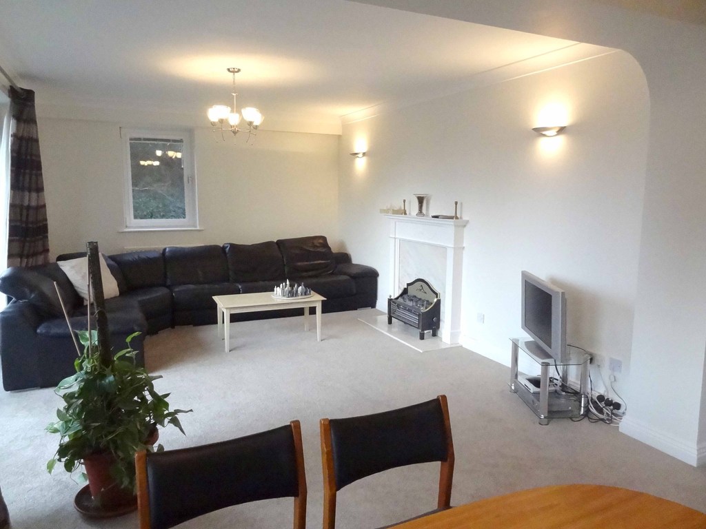 Double door entry to dining area with space for family sized table. Window to south aspect and archway to the right leading to the main living room where there are double glazed sliding patio doors to the rear and balcony. To one wall is decorative fire surround and there ample space for sofa suites and additional furniture as required.