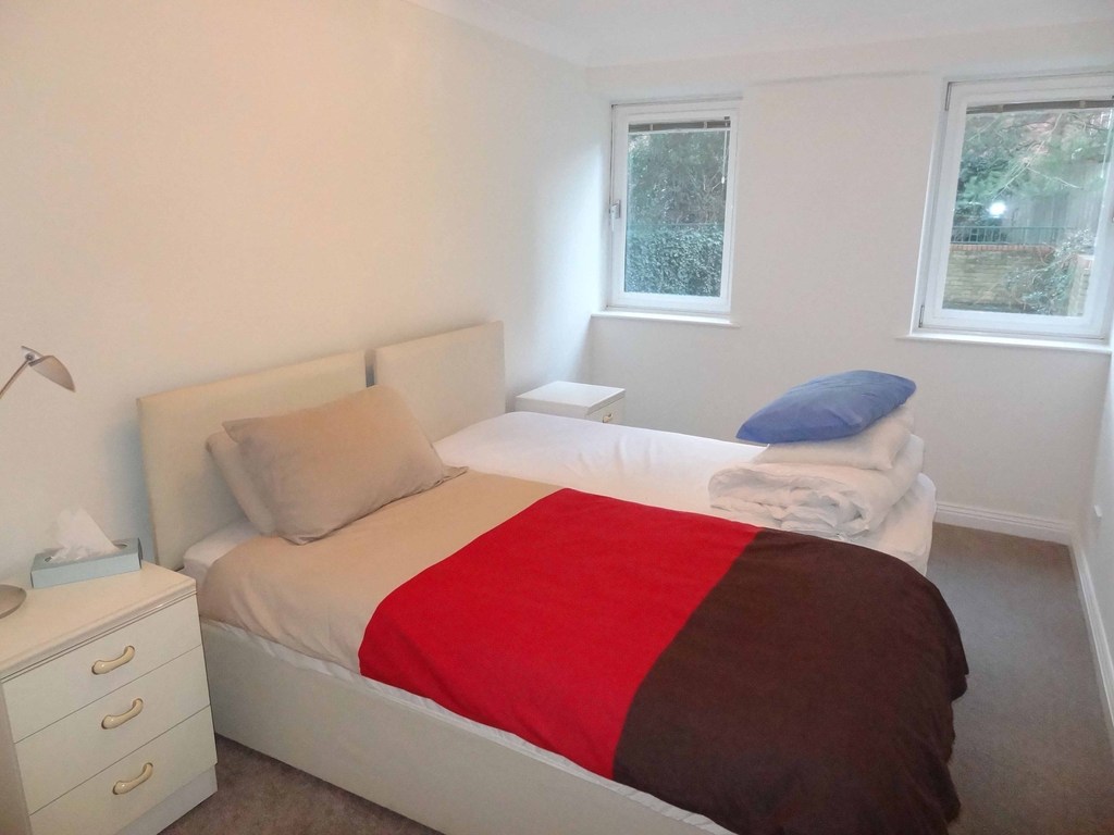 Window to side (west) aspect. There are built in wardrobes, space for double or twin beds.