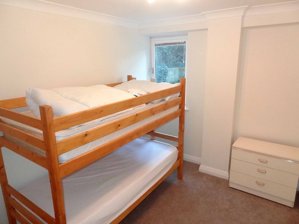 Window to side (west) aspect. Again space for a double bed, although currently has bunk beds. Built in wardrobes.