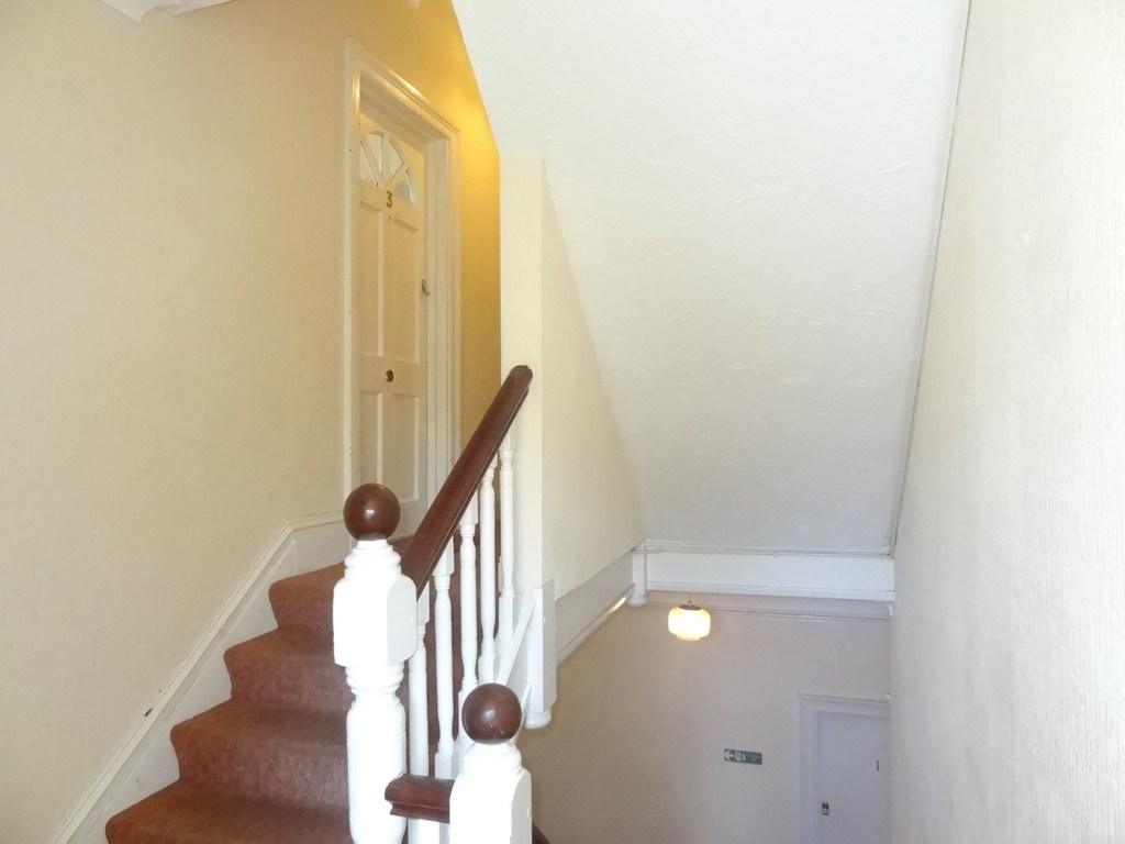 A secure entry front door leads via a stairway to the first floor landing and then to the front door of the flat.