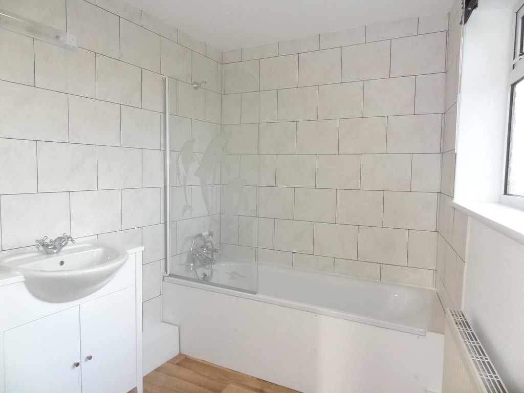Window to side aspect, radiator, fitted with a modern white suite, ceramic flooring.