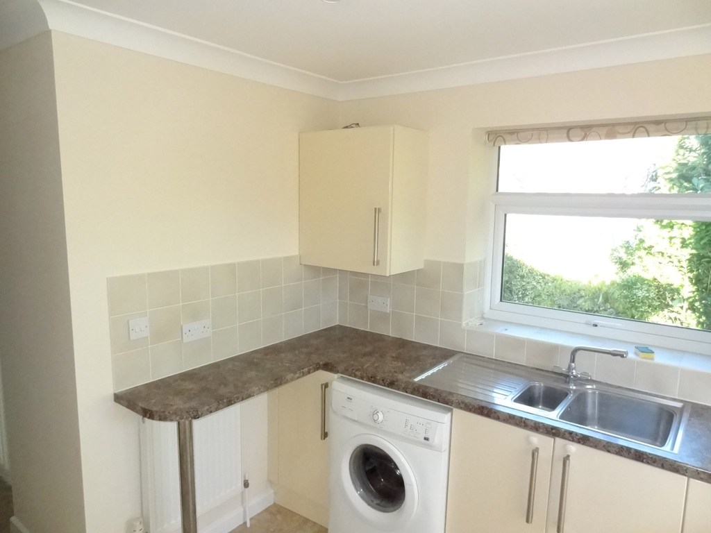 Window to rear aspect, glazed door to rear garden. The kitchen is fitted with a one and a half bowl single drainer stainless steel sink with a monoblock mixer tap, set into a range of rolled edged laminate working surfaces with draw and storage units under and a matching range of wall mounted eye level units over with splash backs in-between. There is under worktop space and plumbing for washing machine, whilst cooking facilities are provided by a four ring hob with housed electric oven under, extractor fan over.