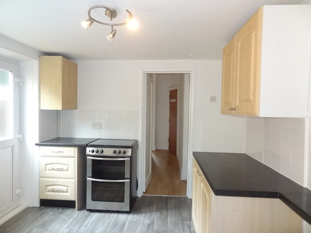 UPVC double glazed window to rear aspect and door to rear garden. The kitchen is fitted with a single bowl single drainer sink set into rolled edge laminate working surfaces, with drawer and storage units under, tiled splash backs lead to further wall mounted eye level units. There is under worktop space and plumbing for washing machine, space for tall fridge/freezer, whilst cooking facilities are provided by a gas oven and four ring hob.