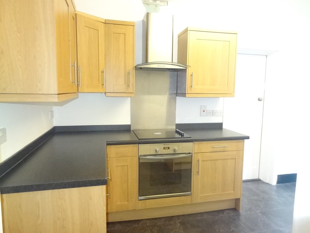 Obscured glazed window and door to side aspect, radiator, under-stairs storage cupboard. Fitting with a matching range of units comprising single bowl single drainer stainless steel sink set into rolled edge laminate working surfaces with units under and eye level units over. Cooking facilities are provided by an electric hob with electric oven under and extractor hood over, washing machine and space for tall fridge/freezer. Also space for small breakfast table. Door to;