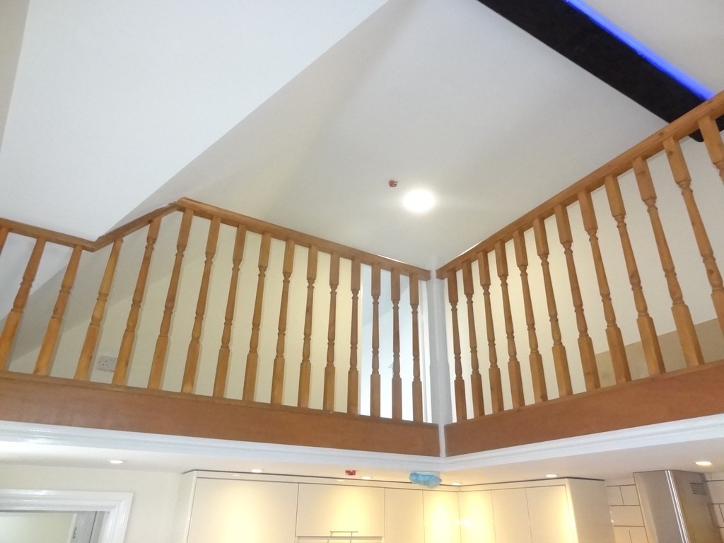 Enclosed with a banister rail this landing area leads to;