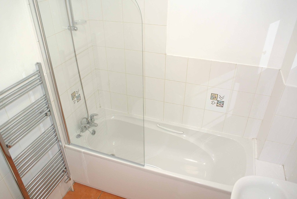 Fully tiled floor and half tiled walls, radiator/towel rail. Fitted with a modern white suite comprising bath with mixer tap and shower attachment over, closed coupled w/c and pedestal wash hand basin, mini strip light and shaver point, extractor fan.