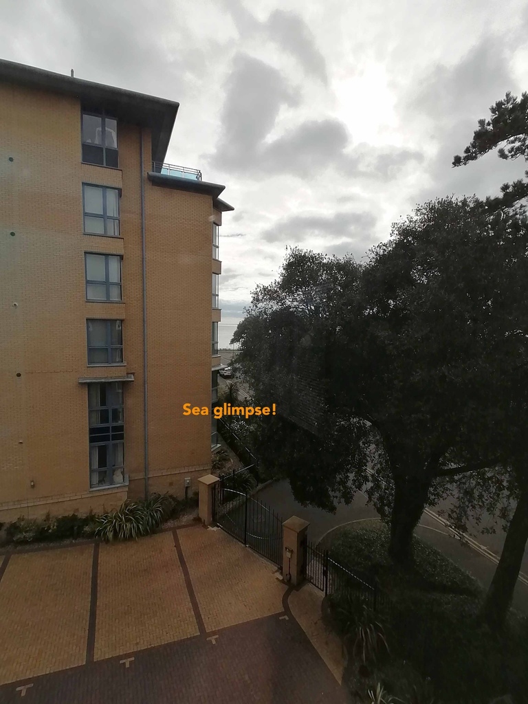 Picture window to front aspect, further smaller window to side aspect with sea view and to the left corner as you enter is a glass doored almost walk in cupboard which also has a window to the sunny southerly aspect. There is ample space for both sofa and dining suites. Door to bedroom.